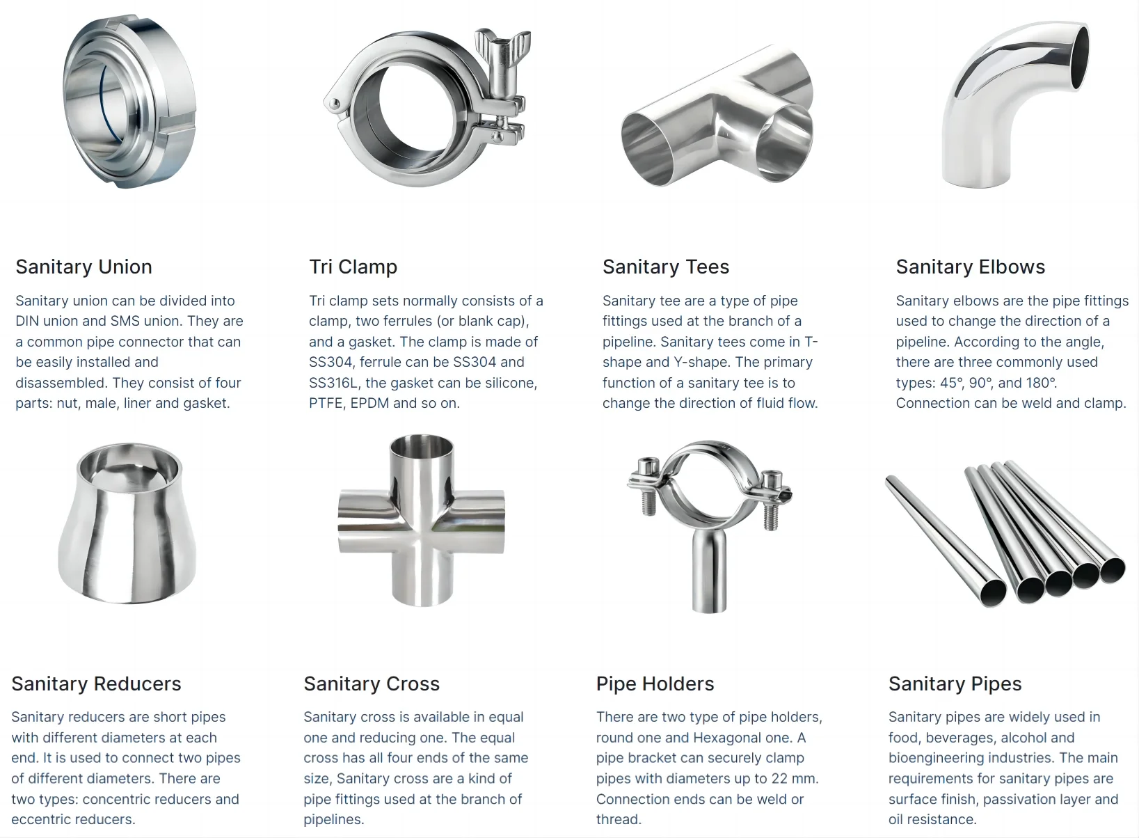 Connection ends | Tri Clamp, Butt Weld, Thread, Union, Flange |