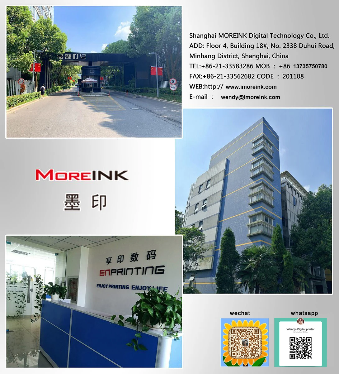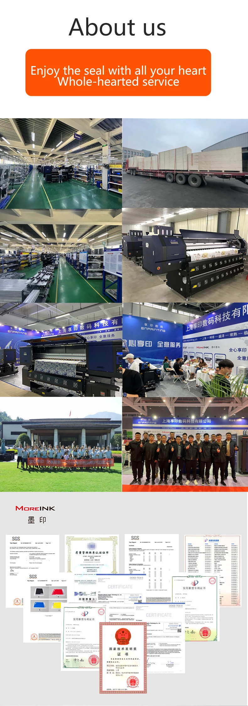 one-stop application plan supplier of digital printing machine. Our brand for digital printing machine and ink: ENPRINTING, ENJET, MOREINK. Also, we supply MIMAKI, HOMER, Atexco, ENPINK etc.