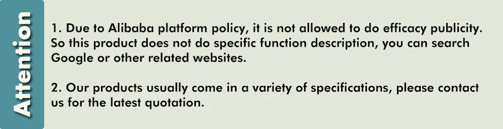 Package | 1. 1kg/bag, Food aluminium foil bag and PE food plastic pack inside. 2. 25kg/drum, Food grade paper drum outside and PE food plastic pack inside. 3. Customized order packaging and labels. |