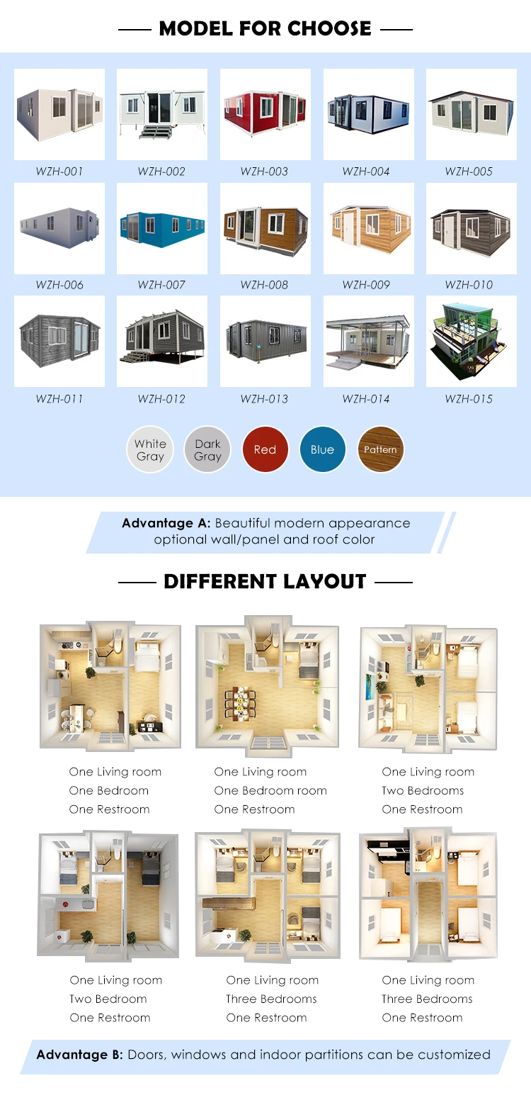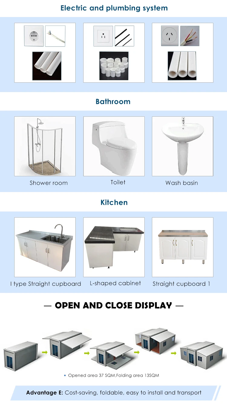 Advantage | (1) Fast installation: 2 hours/set, save labor cost; (2) Anti-rust: all material use hot glavanized steel; (3) Waterproof: without wood ceiling,wall; (4) Fireproof:Fire rating A grade (5) Simple foundation:just need 12pcs concrete bolck foundation; (6) Wind-resistant(11 level) and anti-seismic(9 grade) |