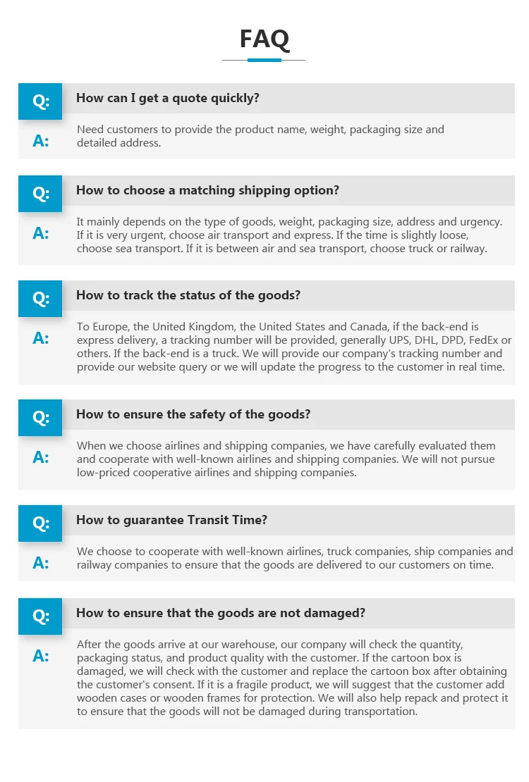 We have sea freight, air freight, railway, truck freight, and express delivery services. Since its