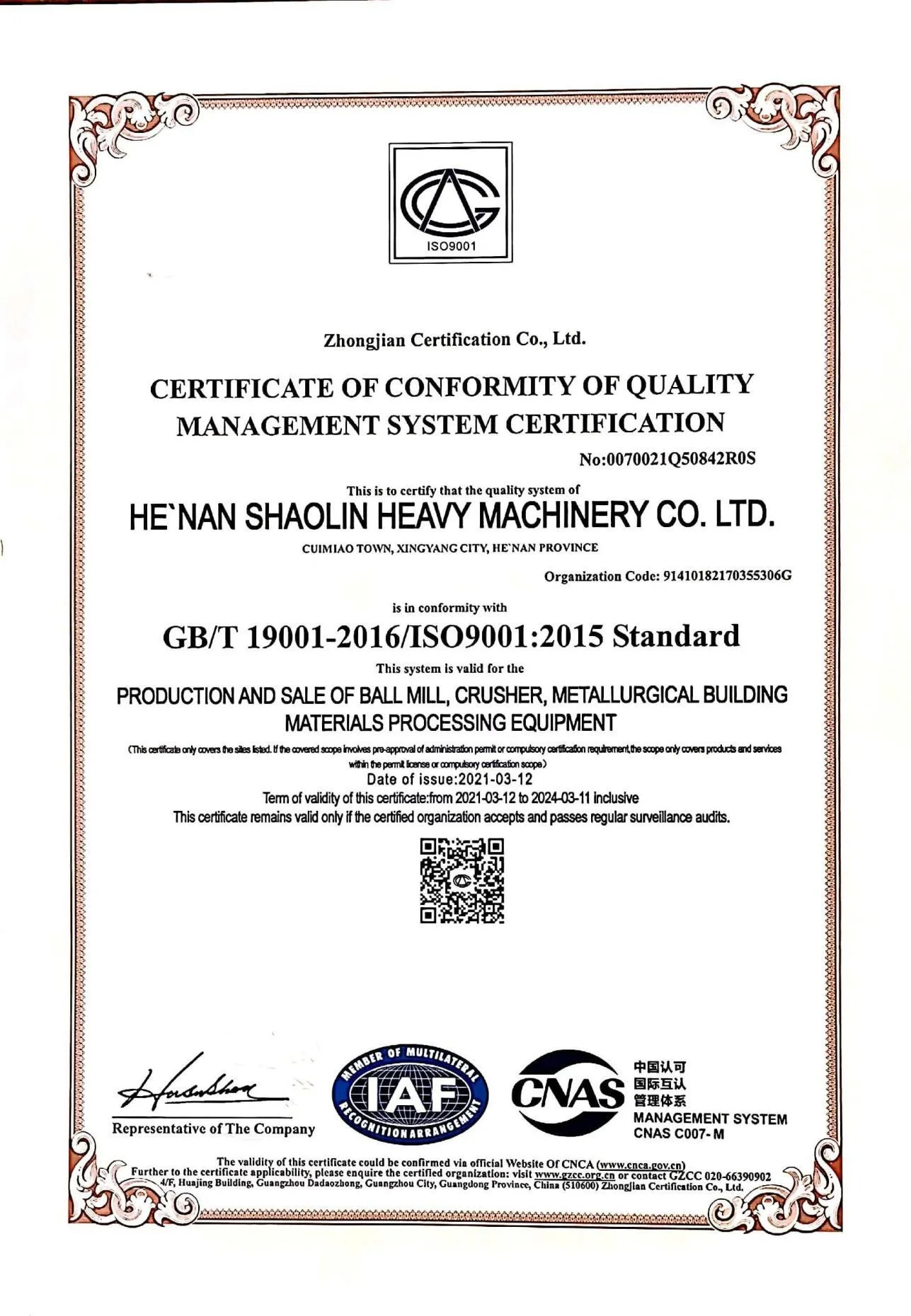 Henan Shaolin Heavy Machinery Co., Ltd. is an enterprise integrating scientific rese-arch, production, marketing and service,specializing in the production of complete se-ts of mechanical equipment for mining, ore dressing, metallurgy and building materi-als. Founded in August 1973, the company has been engaged in mining machinery m-anufacturing for 50 years, specializing in Service in China's mining and building mat-erials, mineral processing, metallurgy, powder and other industries, the main products are various specifications and models of crusher, ball mill, grading flotation machine, magnetic separator, dryer, rotary kiln,ultra-fine plant and other production lines, 288 kinds of products in the industry. Since 2011, the company is committed to the rese-arch and development and marketing of high tech products, relying on scientific res-earch units and universities, as well as domestic high-end industry associations of the expert team platform, and strive to build a set of equipment research and develo-pment, process research, technological transformation, project design, mechanical s-upport, installation and commissioning,production and energy saving, etc., and in 20-13, it gradually became the most scientific research, design, environmental protection and one-stop comprehensive mining industry in China. In 2013, it gradually became the most scientific research, design,environmental protection and one-stop compreh-ensive service enterprise in China's mining industry, and in 2015, its sales exce-eded 300 million yuan. For a long time, the company adheres to the design concept of lea-ding technology and advanced equipment, and currently cooperates with 38 scientifi-c research units in China to jointly research and develop and produce roller presse-s, micro powder mills, suspension furnaces and other products to provide customers with new processes, technological transformation,standard excess, energy saving an-d protection and environmental protection services. The company's existing product sales cover the central and western provinces and radiate across the country.
