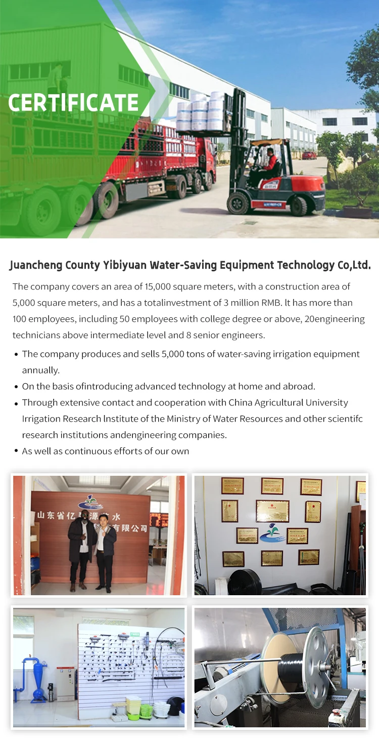 4. Why should you buy from us not from other suppliers? Shandong Yibiyuan Water-saving Irrigation Technology Co., Ltd. is a comprehensive professional enterprise integrating the research, development, production, operation and technical services in one.