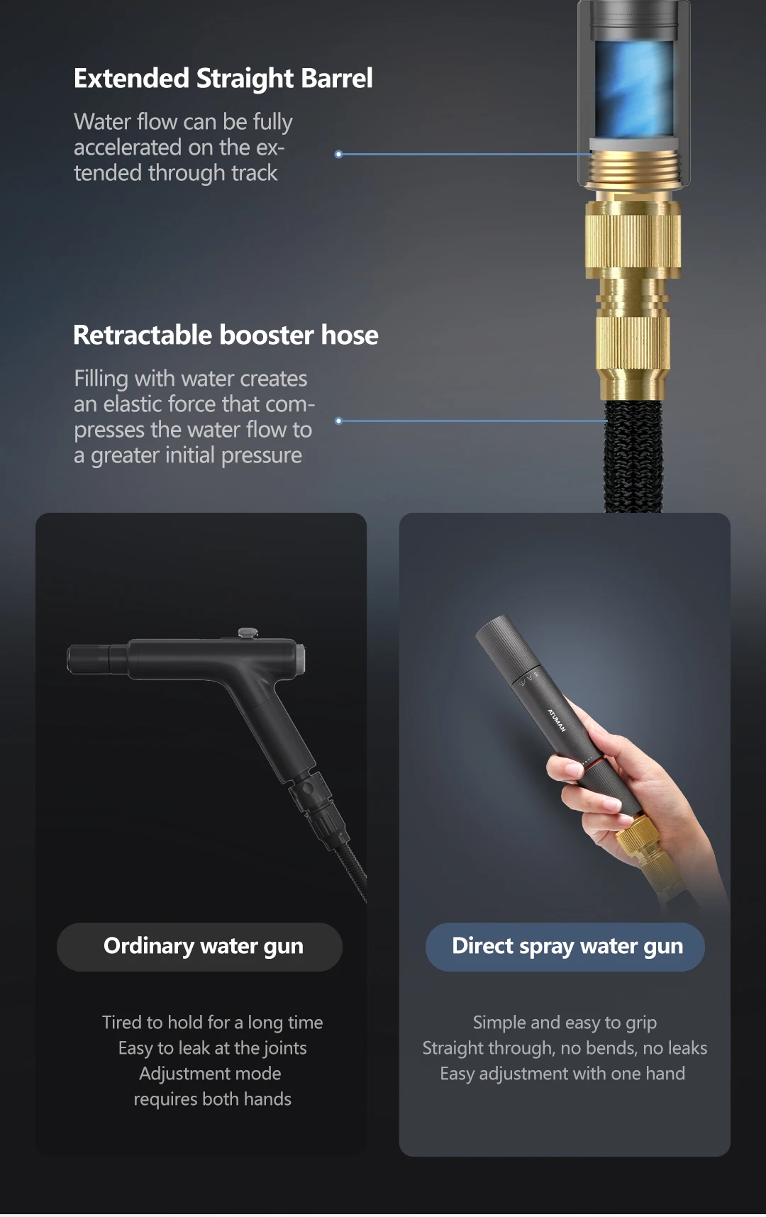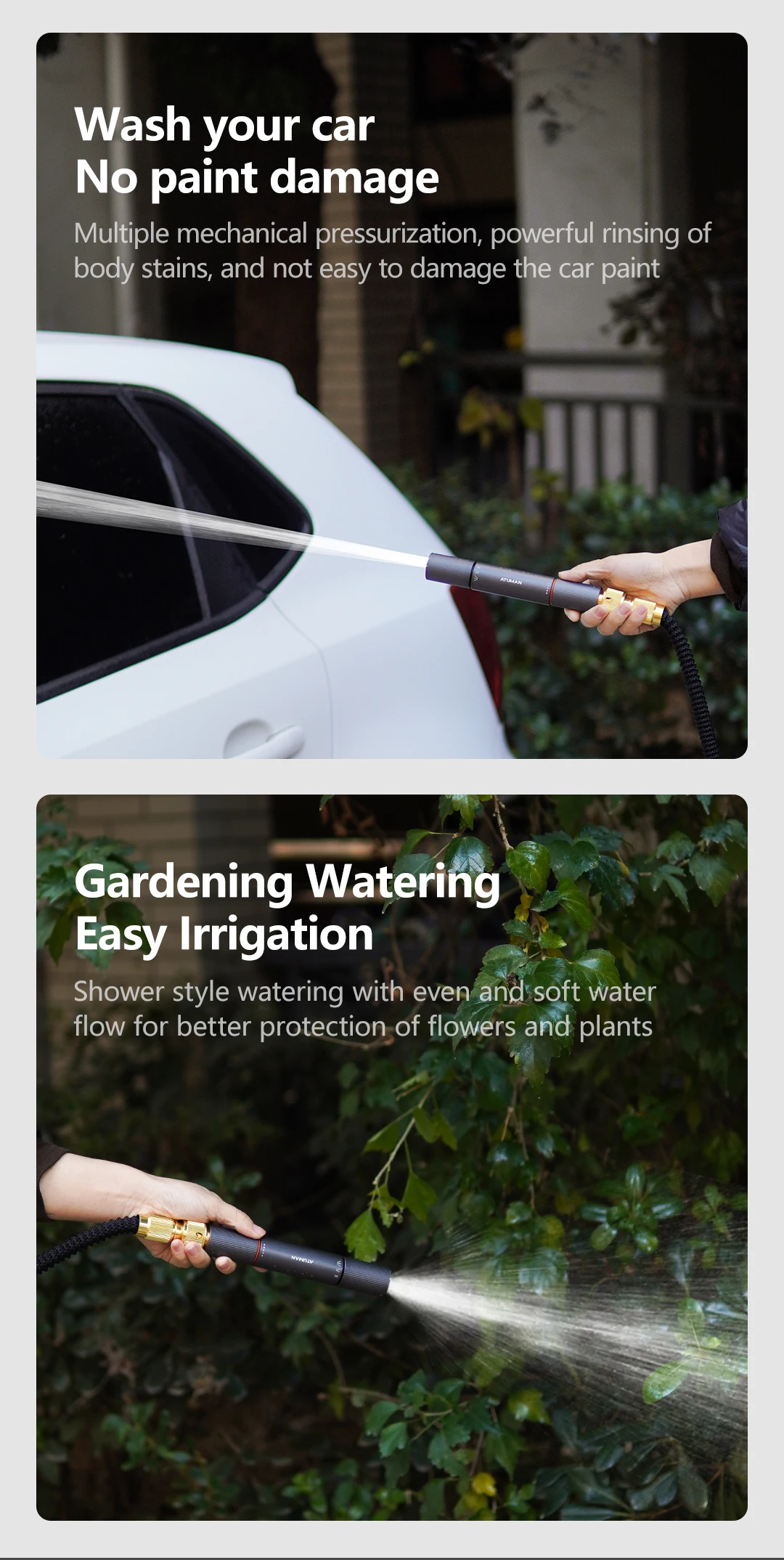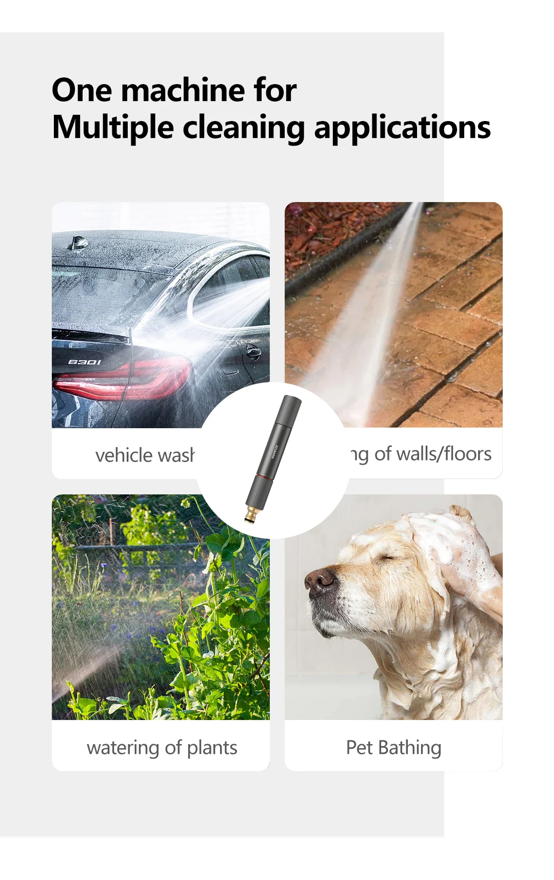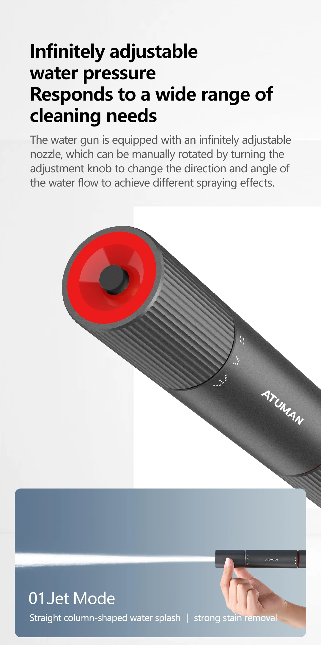 One-piece aluminum alloy gun barrel, full-body oxidation coating, acid and alkali resistance and no rust. Straight-through structure design, sealed water-proof joint, stains can be cleaned at once. Three water outlet modes meet diverse needs.