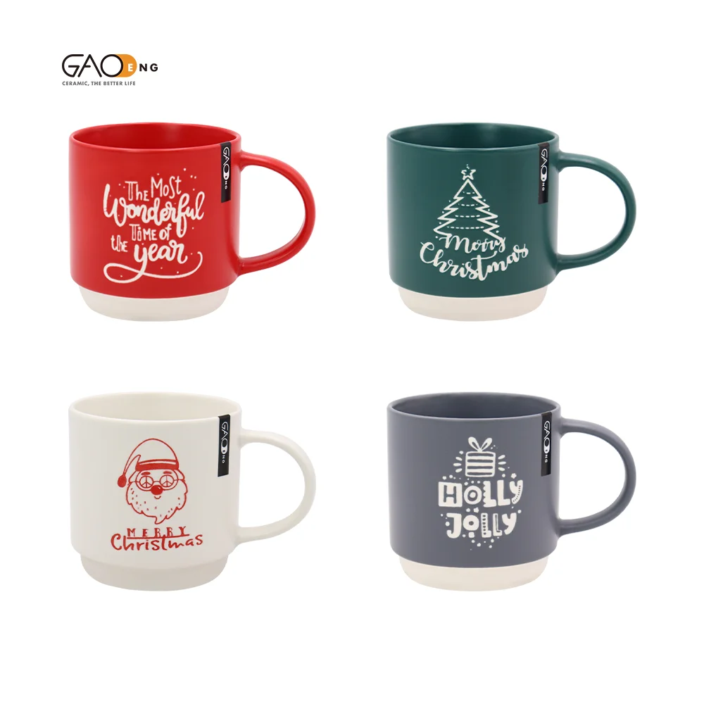 Product name | Christmas Design Ceramic Material Drinkware, Christmas Silkscreen Coffee Mug with Natural Glazed Base Custom Logo |
