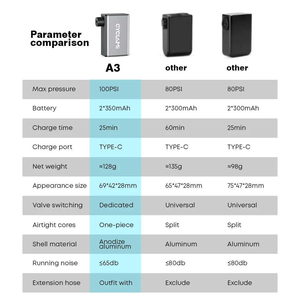 Wholesale 100 PSI CYCLAMI A3 Mini Electric Air Pump Bicycle FV AV Inflator Presta Schrader Valve Outdoor Road MTB Bike