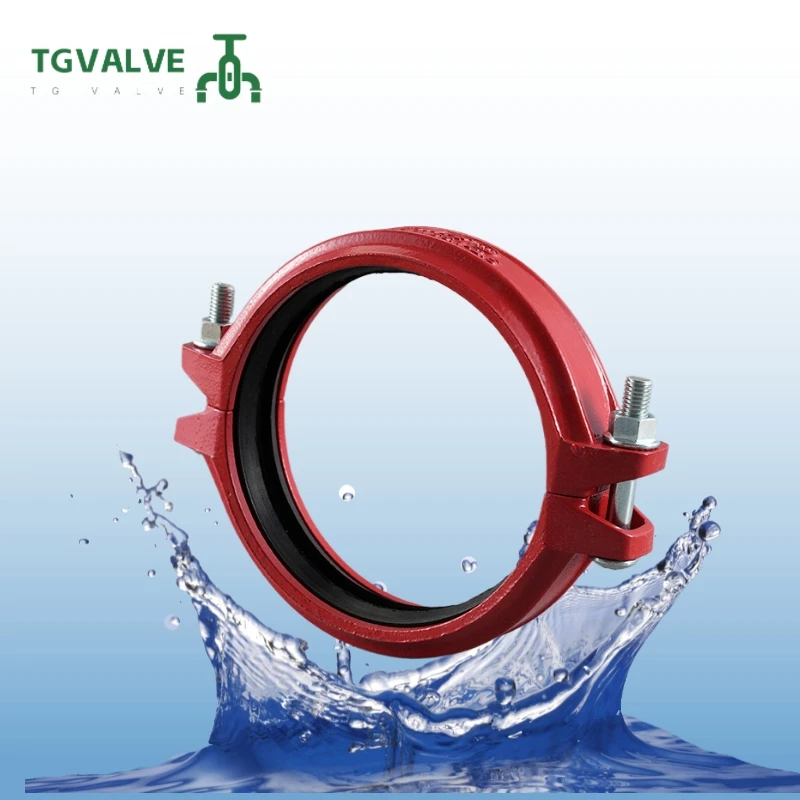 Couplings housing are made of ductile cast iron material, standards is the same as American ASTM A 536, grades as 65-45-12. Ductile cast iron material is not easy to rust, with high tensile, strong ductibility, flexible extension ability as well as strong strong vibration and noise reduction performance. | Standard: red painting (Standard epoxy resin) Optional: blue painting, silver painting, nickel plating | Colorful Zn plating Bolts: mechanical performance grade 8.8 (GB/T 3.98.1) Heavy duty nuts: mechanical performance grade 8.8 (GB/T 3.98.2) |