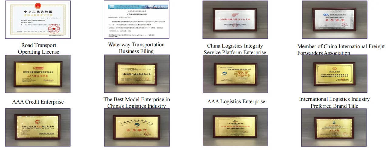 Shenzhen Chuangjing Supply Chain Management Co., Ltd. is an international freight forwarding enterprise approved by the Ministry of Commerce, the Ministry of Transport and the General Administration of Customs. It is a legal enterprise that has obtained the road transportation business license issued by the Road Transportation Bureau. A 3A level credit enterprise certified by the China International Freight Forwarders Association, China Federation of Logistics and Purchasing, Logistics Enterprise Comprehensive Evaluation Committee, Quality Certification Supervision and Management Center, and China Enterprise Credit Evaluation Center (obtaining a 3A certificate means that the company's product quality, The management level and credibility are internationally recognized).
