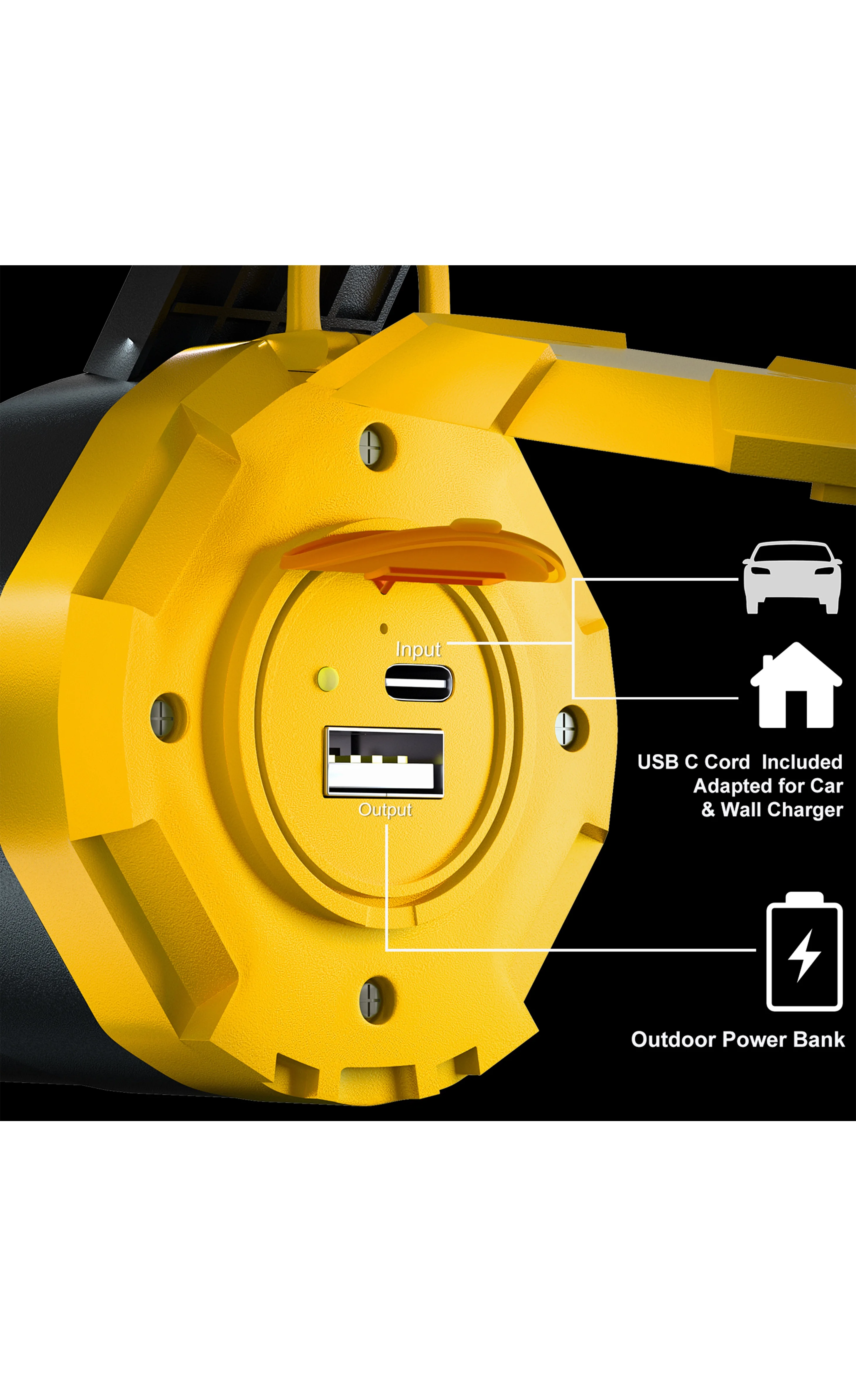 USB A + USB C Charging ports,compatible Many devices charging.more convenience any time ,anywhere,indoor or outdoor. a very good spotlight