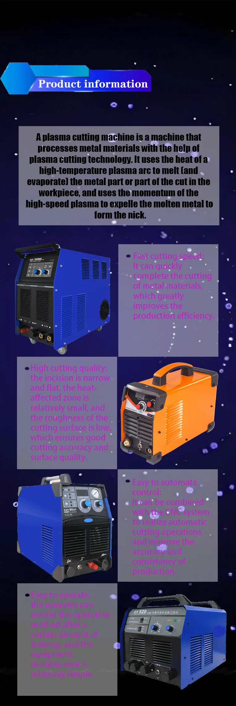 Product name | plasma cutting machine | Single Pulse Energy | Adjustable | |