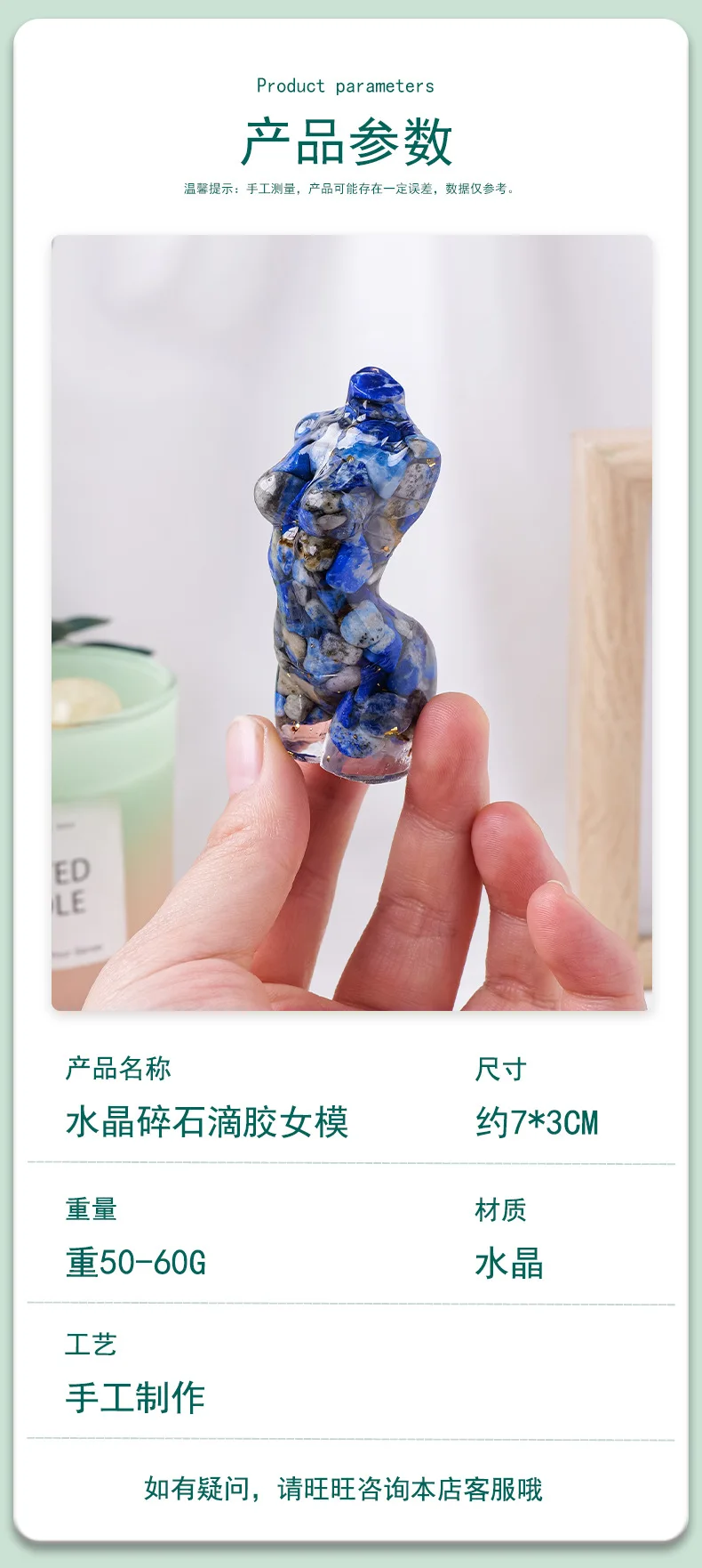 note | 1. Due to the handmade nature of * natural crystal stone, please accept the change of size, shape, color, inclusion and crystal transparency. 2. The pictures shown in the list are for reference only. Each natural crystal you receive is one of a kind in the world. 3. If you have any questions, please contact me online. I will give you a quick reply. |