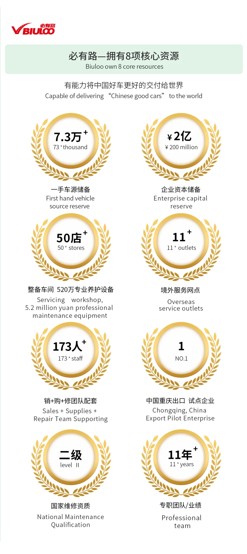 We are a large corporation. Our company, Biulu, mainly engaged in auto exports business, including EV cars, petrol cars, used cars wholesale and retail. Our team has 10+ years of experience in the field and a professional after-sales service system. We have long-term and stable cooperation with many factories of Chinese automotives to ensure sufficient supply and good price.