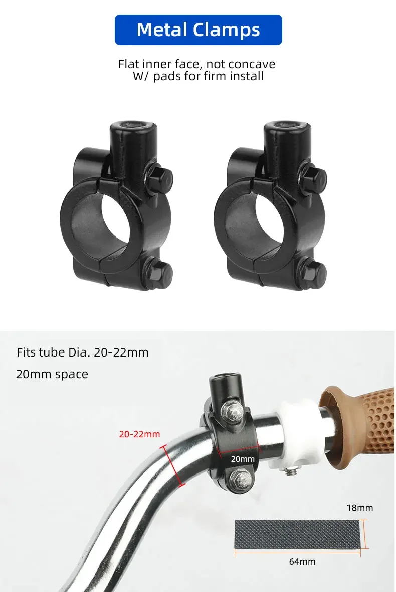 - Clamp: Aluminum alloy, fits Dia. 20-22mm