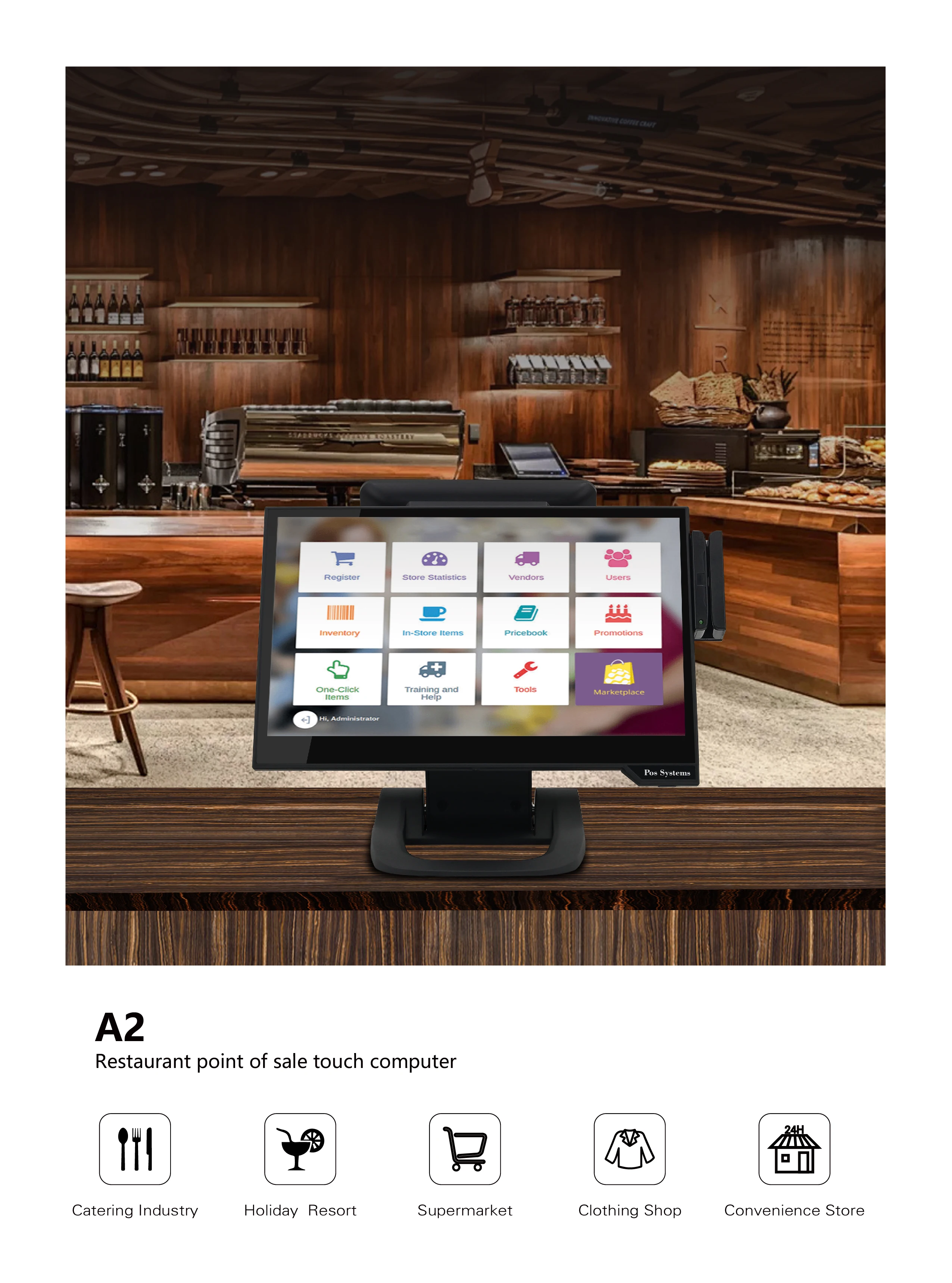 Integrated Cash Box MSR Scanner Thermal Printer Gilong Make Processor Core i5 Core i3 4Gb RAM 64GB SSD Touch Monitor Pos
