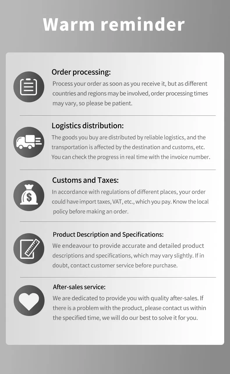 A4:The after-sales shelf life of different products is different. If you need to know the after-sales problems of specific products, please contact us. Q5:How about return and refund?