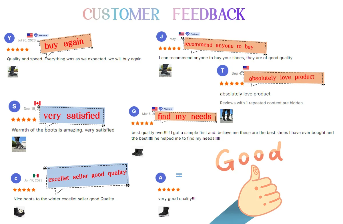 ![]() | Our Team: We have a long history of winter footwear production.With advanced equipment.Mature technical team.Over the years, it has been committed to the development and production of winter shoes.Excellent quality and low price are favored by domestic and foreign consumers. |