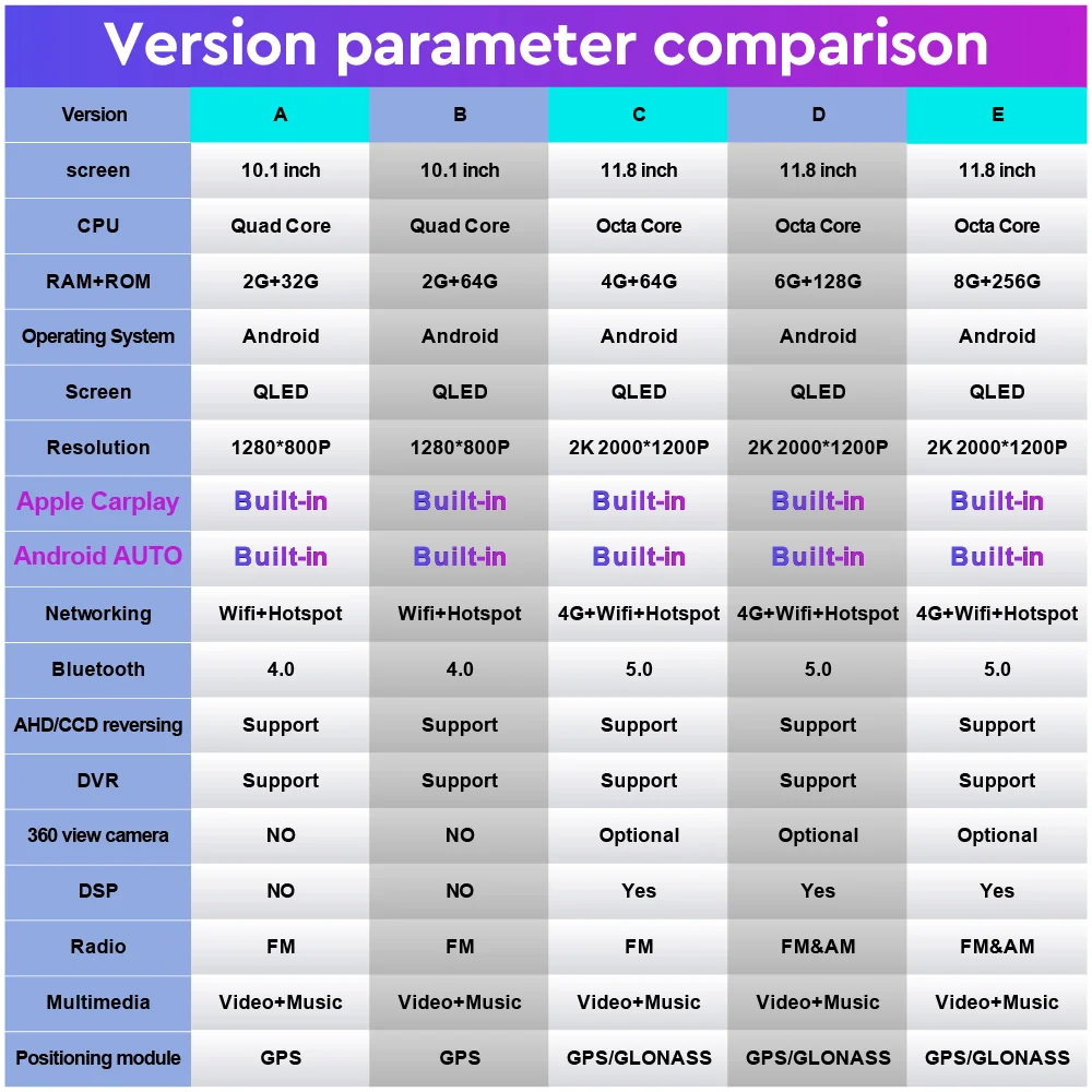 1.Built in Apple Carplay/Android Auto, microphone, BT, support voice call and A2DP, can play stereo music through BT from your Phone,can listen to music or answer hands-free calls while navigating 2.Built-in wifi, support wireless internet and hot-spot sharing