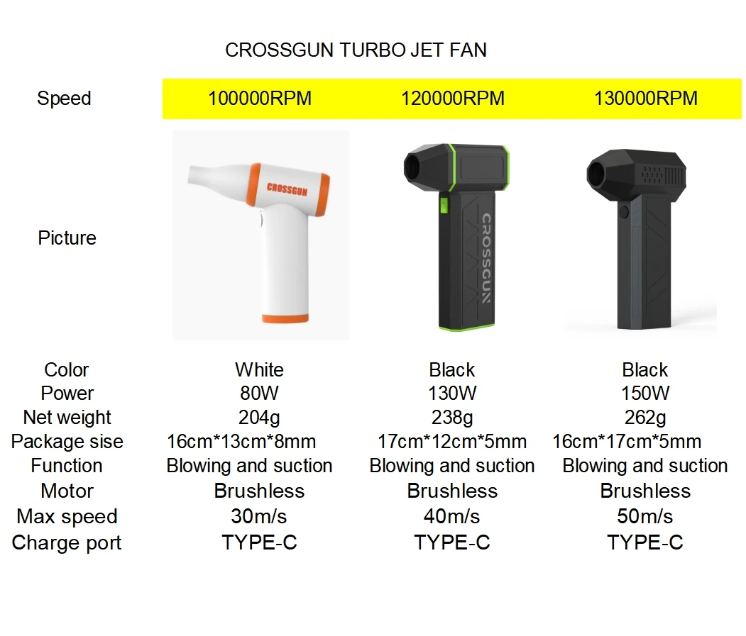 Accessories | 1* turbo fan,1* Type-C cable,1* instruction,2*nozzle | ||||||