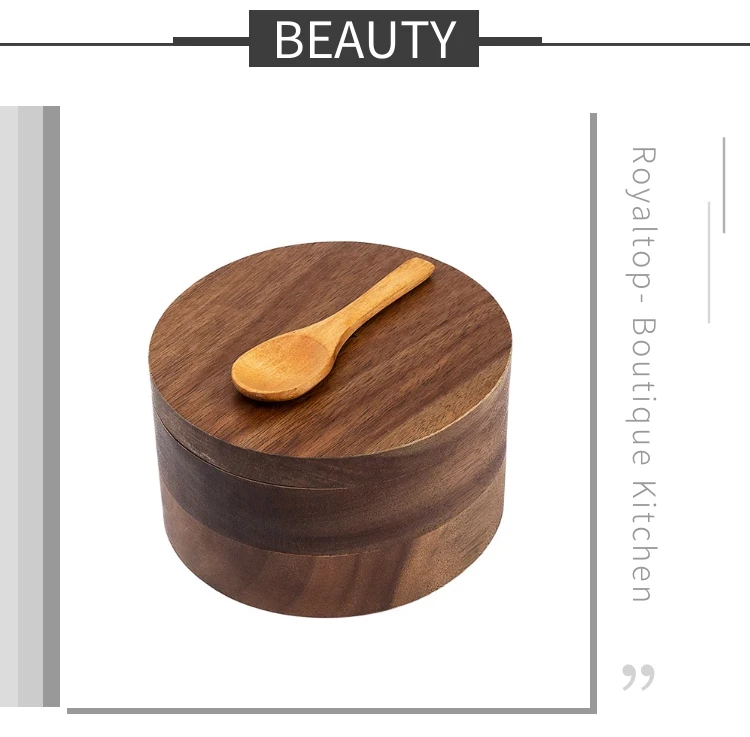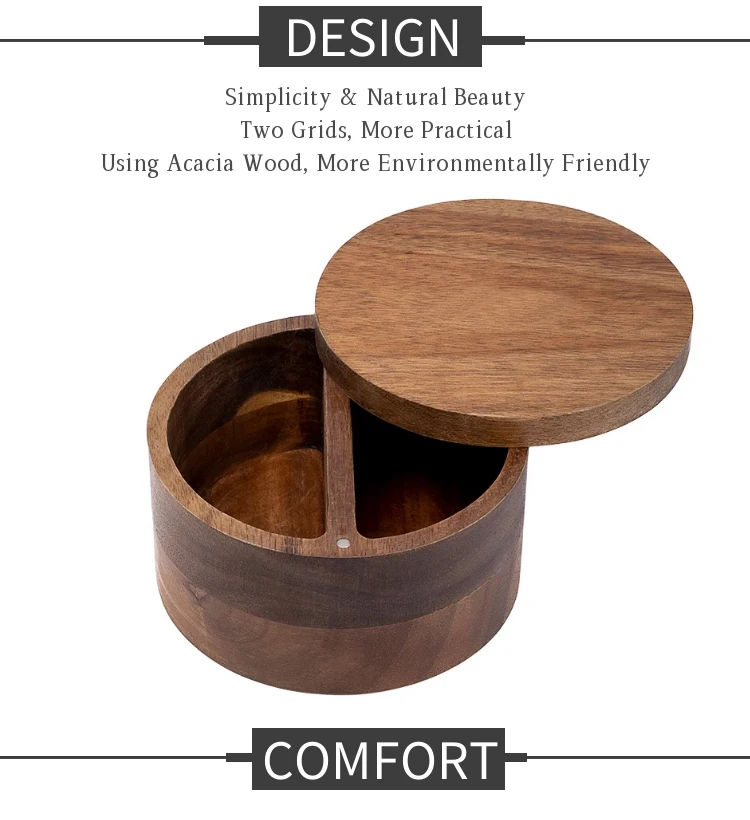 Kitchen Gift Set Wooden Spice Jar Eco Friendly Salt Cellar 2 Compartment Acacia Wood Spice Box with Magnetic Swivel Lid