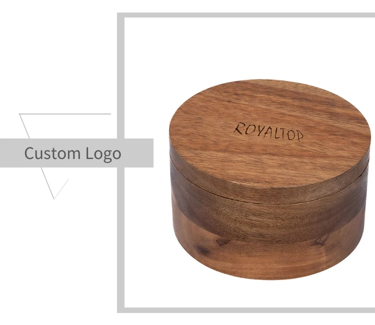 4.Size:The diameter of the product shown in the picture is 11.3cm and the height is 6.7cm.We accept customized size of the wooden box and we can use laser printing Logo.