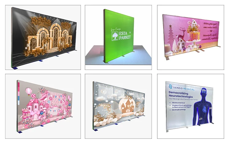A: fabric tension display, light box, SEG Fabric frame, mesh banner, beach flag, feather flag, teardrop flag, board, poster ,roll up banner, pop up banner, tents, inflatable, Beach Umbrella, Golf Umbrella, table cloth etc. |