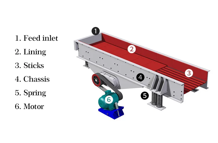 Model | Feeder Trough size(mm) | Max Input size (mm) | Capacity (t/h) | Motor power (kw) | Weight (t) | Dimensions (mm) |