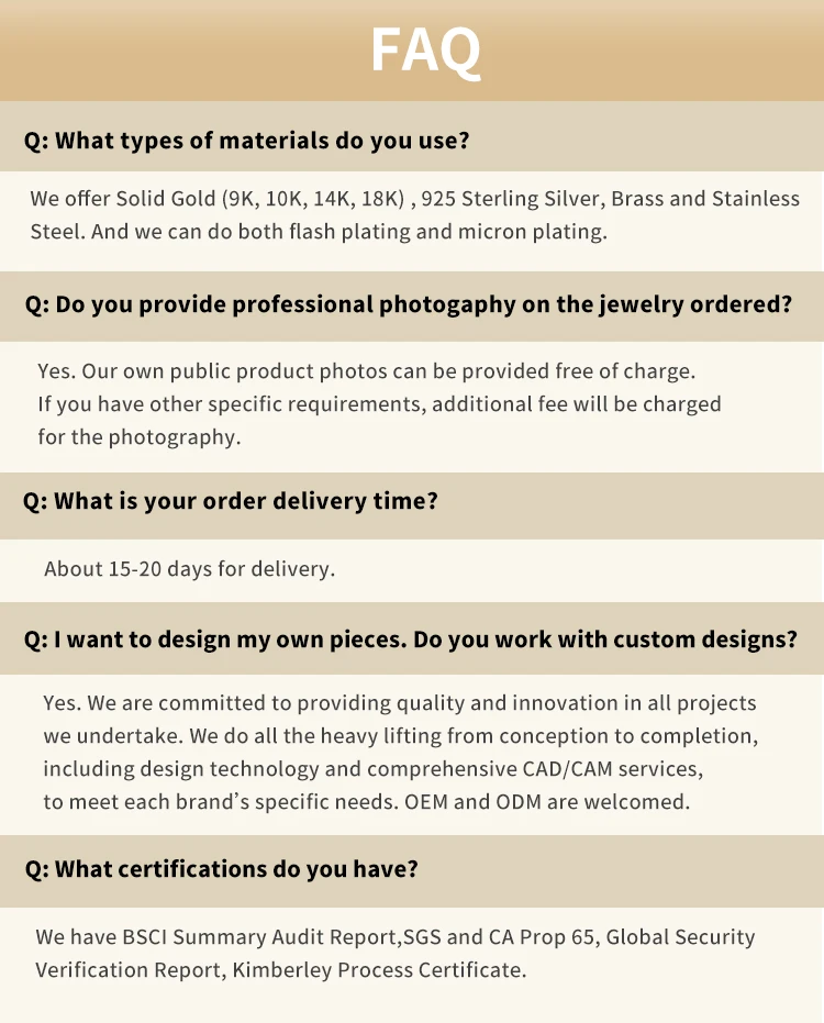 Material | 9K/ 10K/ 14K/ 18K/ Rose Gold/ White Gold | 925 Sterling Silver | Brass/ Alloy | |