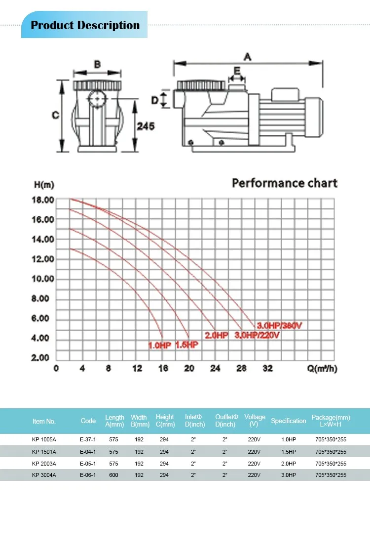 KP1005A | E-37-1 | 575 | 192 | 294 | 2'' | 220V | 1.0HP | 705*305*255 |