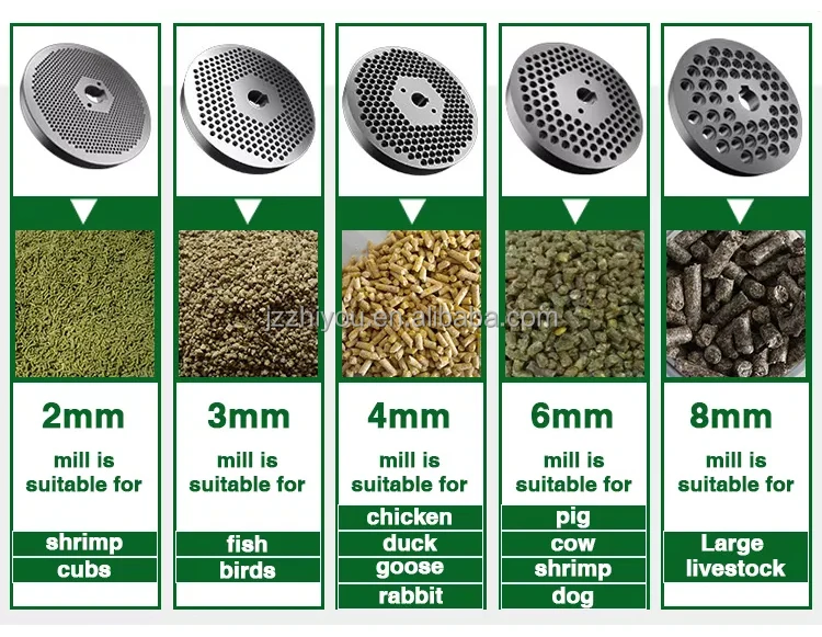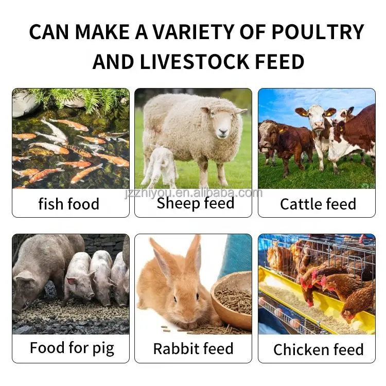 This animal feed pellet er can turn a lot of materials into grains, such as corn, weeds, straw, wood chips, peanut shells, minced meat dog food, etc., so it can be used in chicken farms, pig farms, cattle farms and other farms.