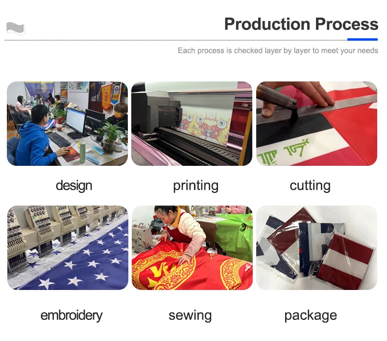 We have 20 years of experience in making flags, with 6 production lines and a daily production capacity of 20,000 square meters. We have 50 designers who can provide you with free designs.