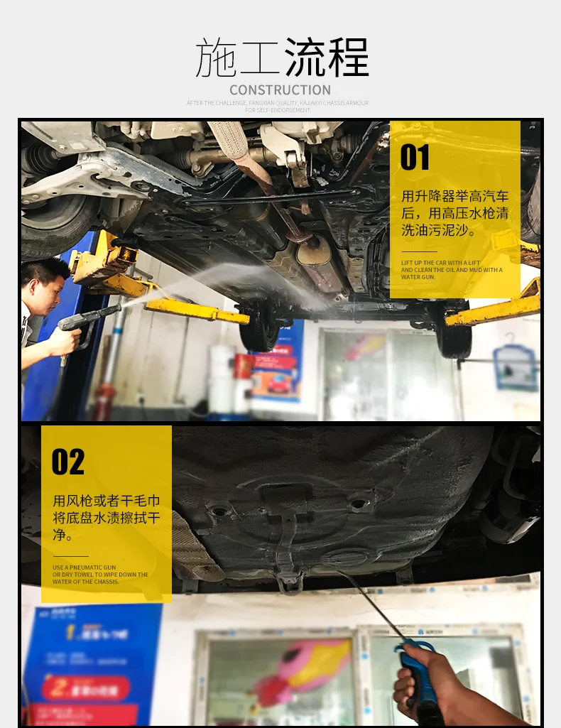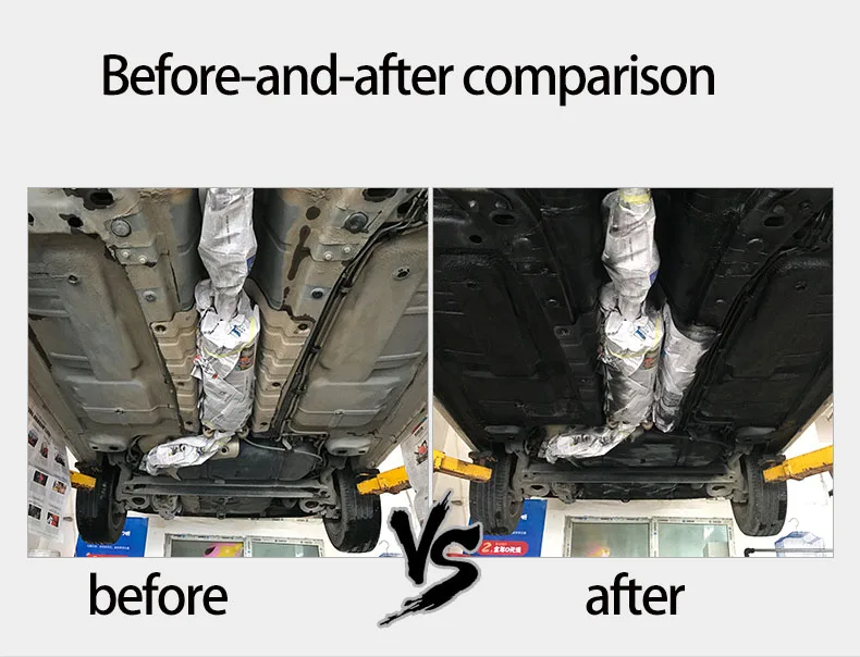 Product Advantages | This product is made of special polymer materials, which can quickly form a special elastic protective layer after use, completely isolating the metal and rubber at the bottom of the vehicle. It has rust prevention, rain and moisture corrosion resistance, sand and stone impact resistance, sound insulation, and obvious sealing effects. Especially suitable for areas such as sand plates, luggage compartments, wheel pits, etc. at the bottom of vehicles | ||||||
