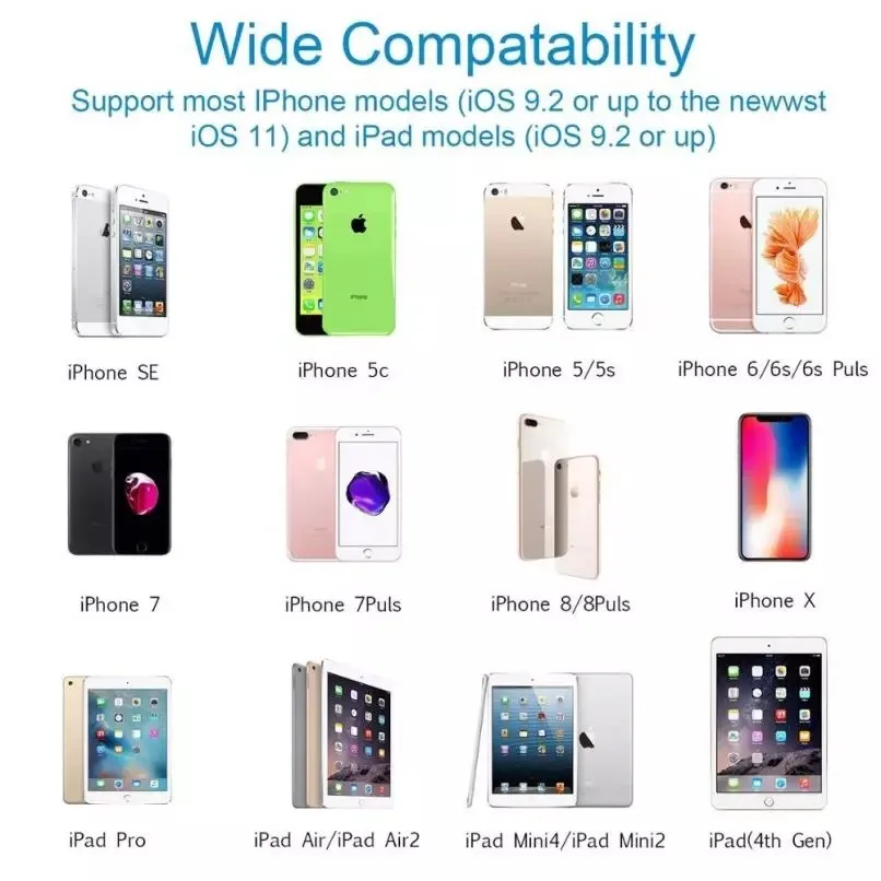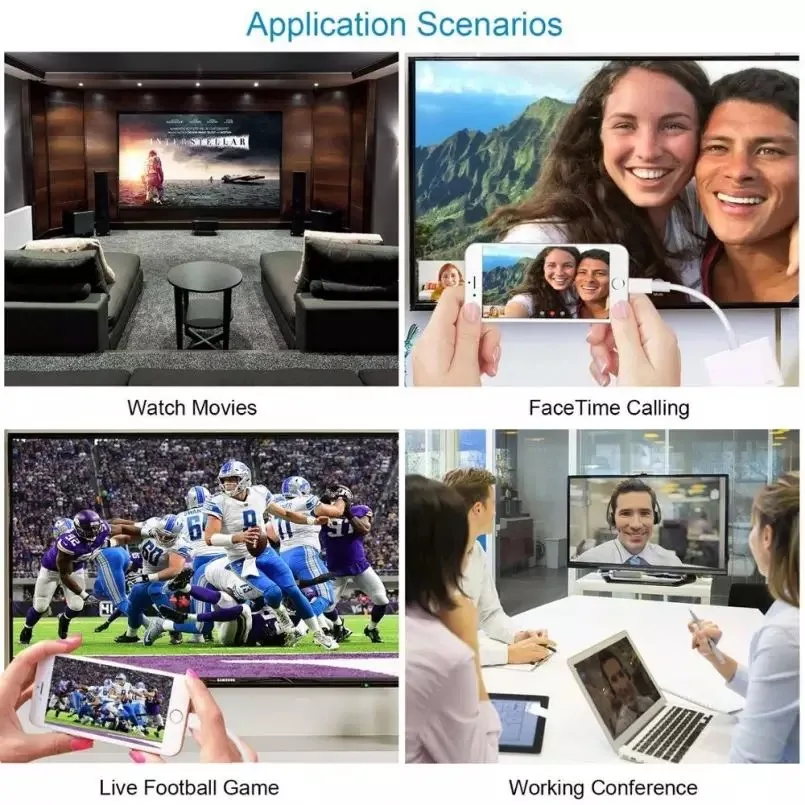 Lightning to HDTV HD conversion with the screen iPhone video HD output 1080P with the screen line Support upgrade (when IOS is upgraded, adapter background can upgrade adapter program according to operation) New upgrade: perfect support for iPhone IOS13, support online upgrade, scan qr code after the connection to upgrade online Product Name: Lightning to HDTV Lightning Product Description: The cable will have slides, movies, photos and everything on the screen of an iPad, iPad mini, iPhone 5 or iPodtouch (fifth generation) on the big screen of an hd TV. Lightning synchronizes the image of the device so that everyone in the room can watch it on a widescreen TV, projection screen, or other HDTV-compatible display. It also supports video output for watching movies, TV shows, and more. Product functions: To use this product, simply plug Lightning into the Lightning port on your device and connect it to your TV or projector via an HDTV cable (purchased separately). Connect iPad, iPad Mini, iPhone 5 and iPod Touch with Retina display via Lightning port, The contents displayed on the device screen (including apps, presentations, websites, slides, etc.) can be mirrored in up to 1080p HD format on hd TV-equipped TVS, monitors, projectors, or other compatible monitors. It can also export movies, TV shows and filmed video to the big screen in up to 1080p HD format. Connecting to a TV or projector requires an HDTV cable (purchased separately) to support audio and video output. Gross weight: 25g