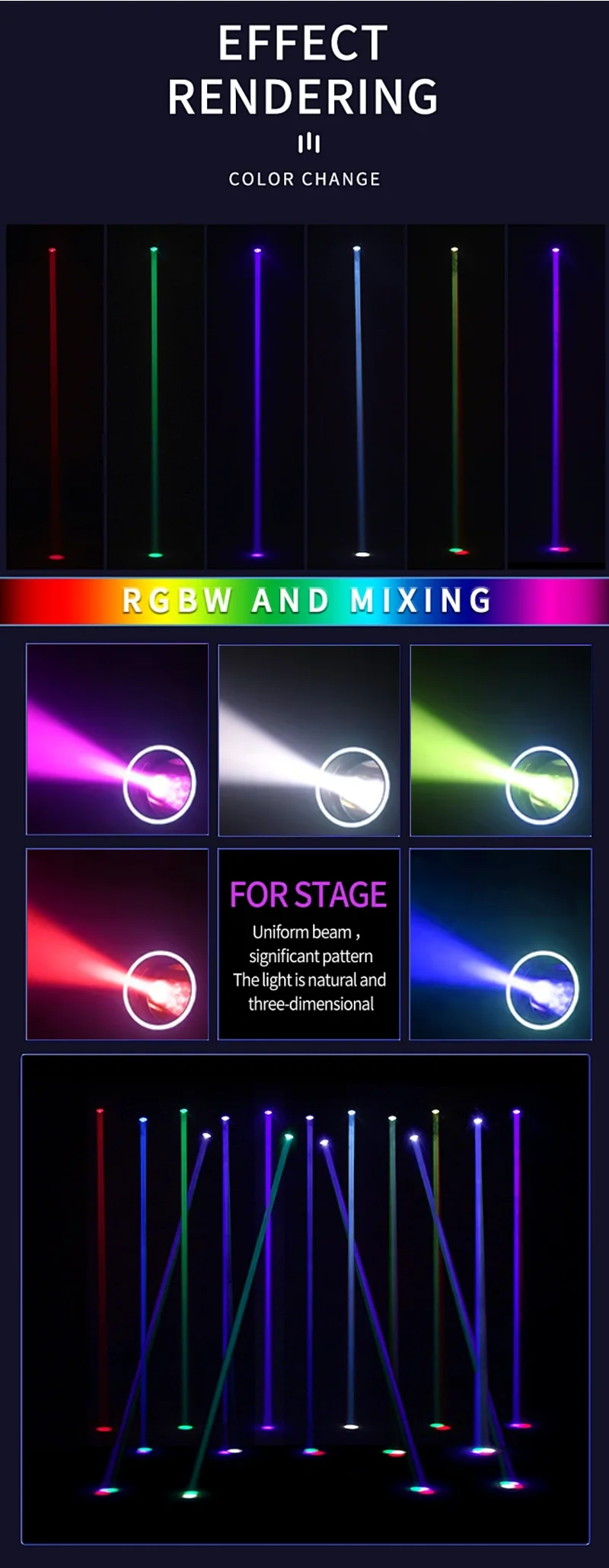 Color system | Multi point color temperature variation (7500K/3200K) ≥ 14 color chips+white light; Can achieve color rainbow |