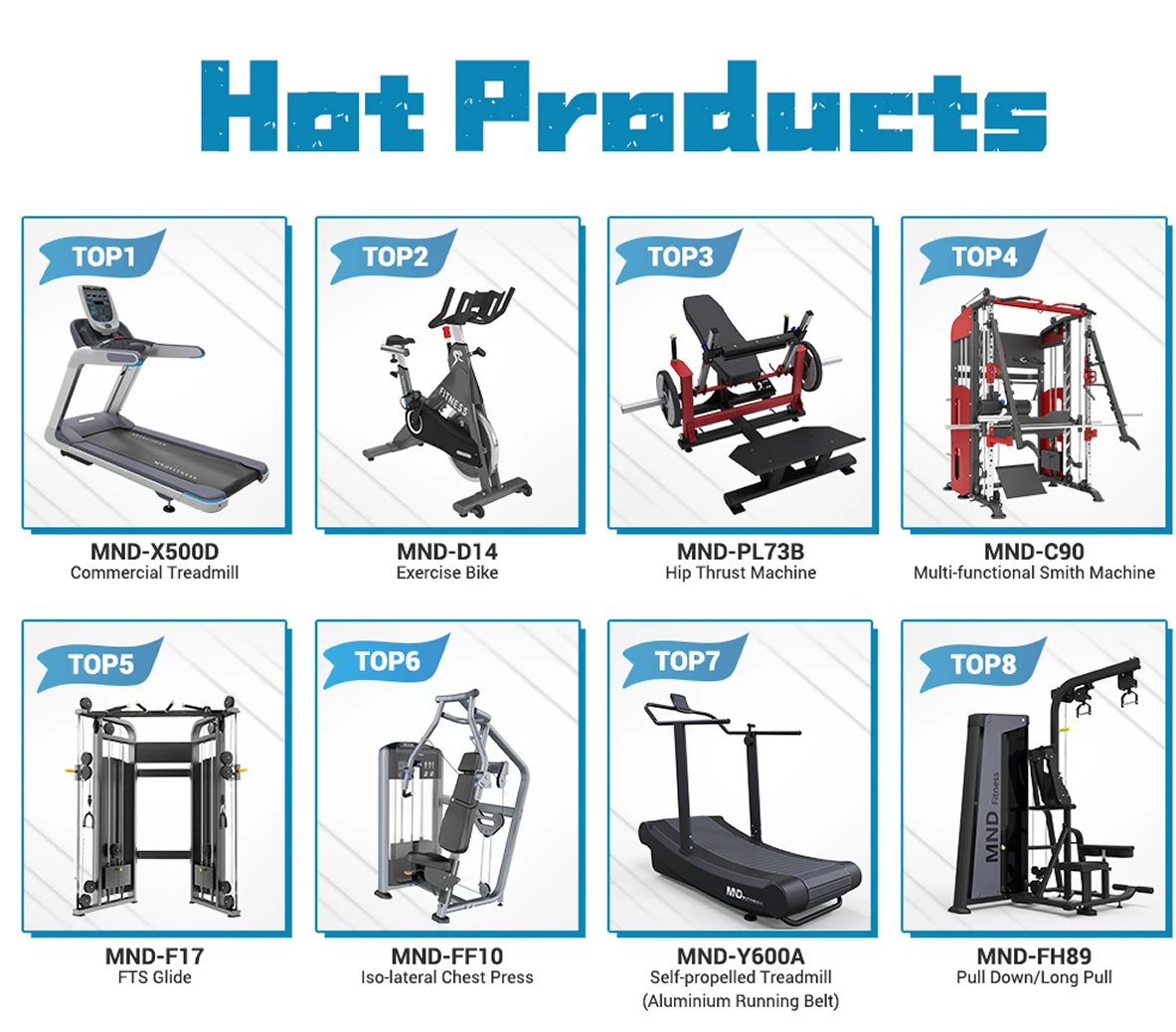 Factory Main Products: | Commercial use gym machine / Plate Loaded fitness machine / carido fitness equipment / Hydraulic rehabilitation trainer / Pin adjustable gym machine / Fitness equipment / Gym equipment / sports machine / exercise machine / body building equipment / Gym accessories |