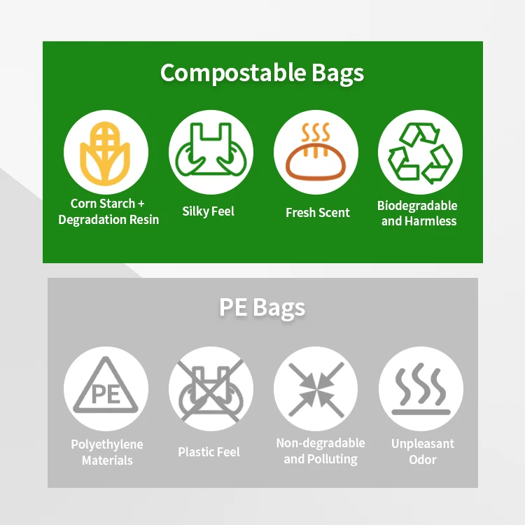 Feature & Advantage | t-shirt bag is a kind of plastic bags used by grocery. It's made of PLA,PBAT,Corn starch which is water, puncture and tear resistant. Bag is available in variety of sizes. These bags are used widely. * Waterproof, shock resistance,biodegradable,durable,protective,durable,security * Biodegradable and compostable material, great tensile strength * Stable delivery time * Environmental material * Printable |