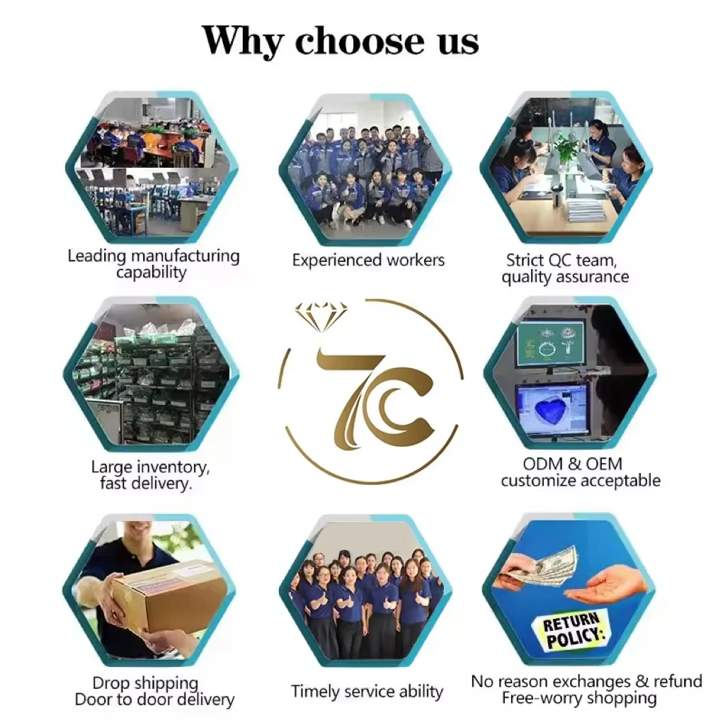 * Shenzhen 7carat Jewelry Co.,Ltd. is located in Shenzhen Guangdong, which is the International sales team. Our factory is the largest production base of Moissanite raw stone and Moissanite jewelry in China. We are an experienced enterprise which specializes in manufacturing and selling Loose Moissanite and Moissanite Jewelry. We mainly manufacture all kinds of synthetic and natural gemstones materials as Moissanite, cubic zirconia, and Moissanite Pendant, Earrings, Rings, Bracelet and other Jewelry. We are equipped with progressed gemstones processing equipment and a team of experienced workers. We make sure that we always keep prompt delivery because of our manufacturing and manager experience. Our products are of fancy colors and shapes like round, oval, pear, heart, marquise, square, rectangle, triangle, tapper, and axe. We can design all kinds of special gemstones from 1mm to 150mm as the guests requested. We insist in an idea of "customer is the highest, credibility is the first". we have won great support from customers around the world.We also offer all kinds OEM/ODM services.