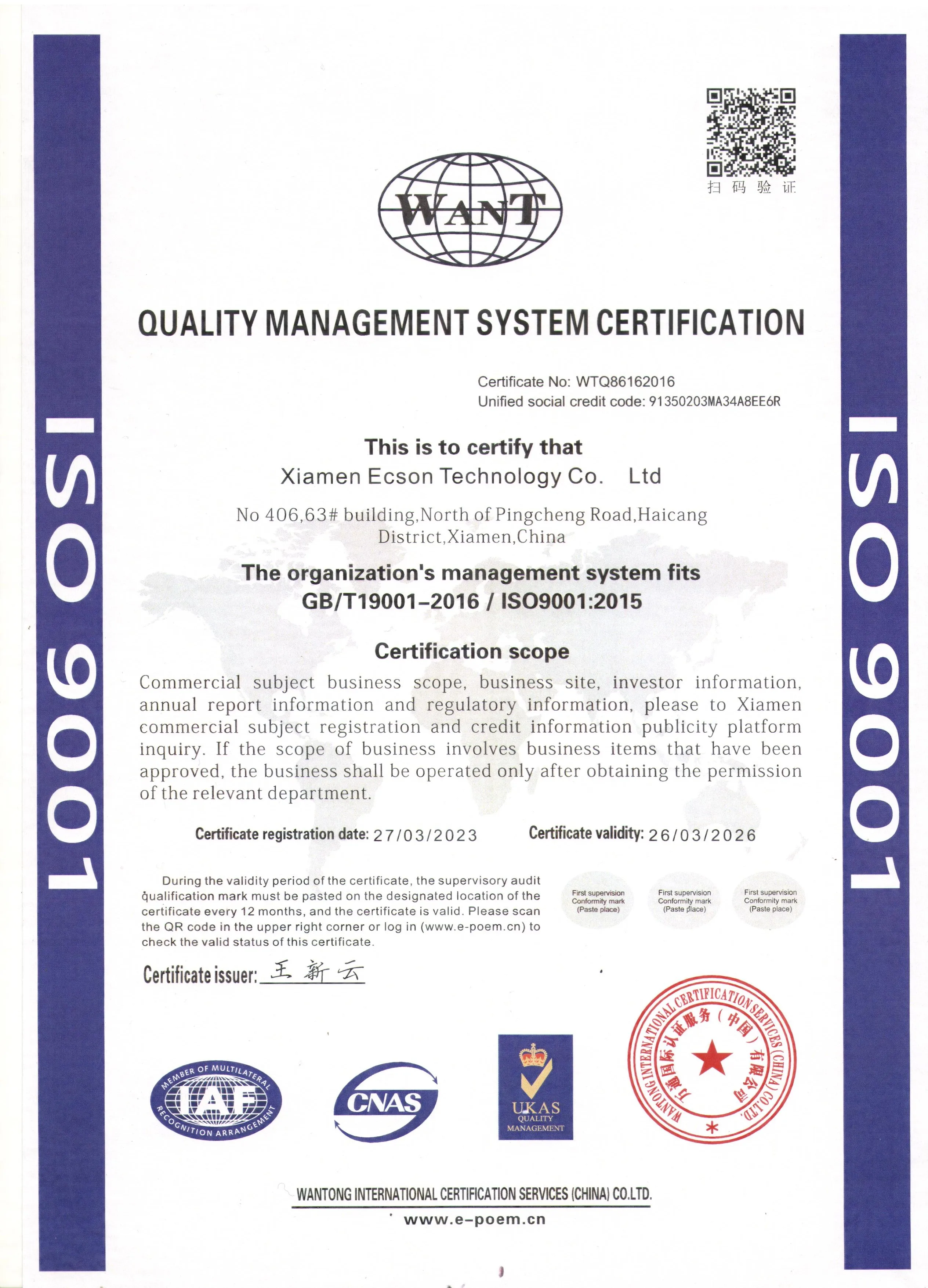 Manufacturer | XIAMEN ECSON TECHNOLOGY CO.,LTD | ||||