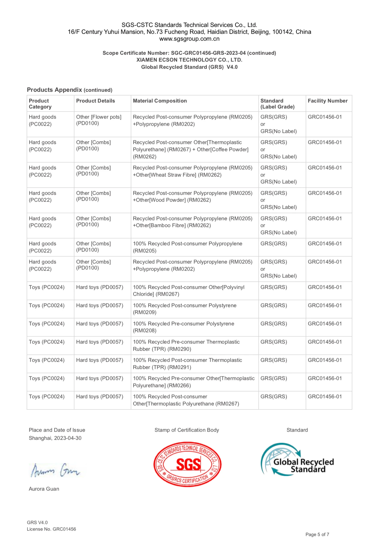 3, 400 more varies of plastic for options base on different areas!We are also global recycle system passed( GRS )!