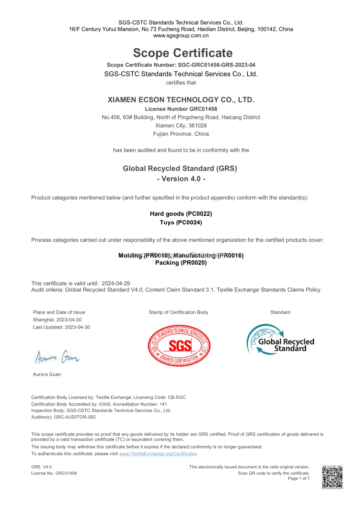 Quanlity System | Global Recycled Standard(GRS),ISO 9001, RoHS ,DIN CERTCO,FDA, SGS,3A reliable enterprise,China Green Environment Protection Enterprise, etc |