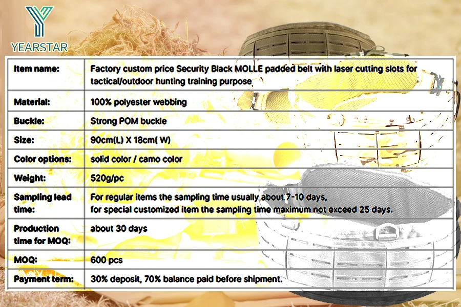 A 1: Our company, YearStar, specializes in the design, manufacturing, and supply of various outdoor and tactical equipment.