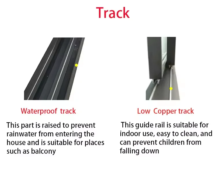 Glass | Single glass: 8mm thickness tempered glass Insulated glass: double hollow insulated glass, 5/6+15 Argon +5/6mm, 5/6+18 Argon +5/6mm, 5/6+27 Argon +5/6mm Laminated glass: double tempered glass, tough and safe Low E glass: anti-UV Tinted or bullet proof available for all windows and doors |