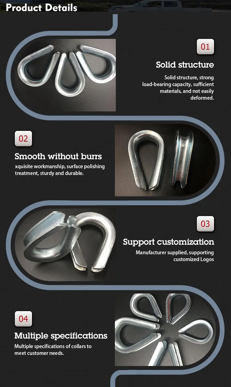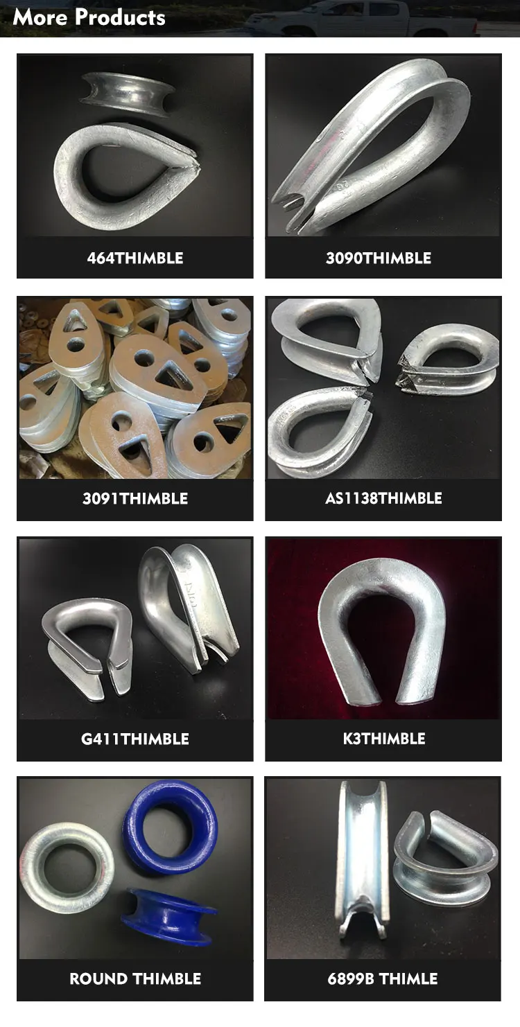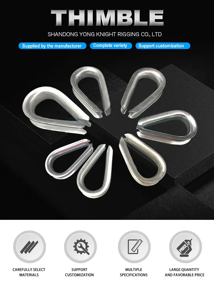 Thimble is a metal accessory used to connect power lines, widely used in various fields such as construction and transportation. Usually made of steel or alloy materials. Thimble comes in various shapes and sizes, and can be divided into different specifications and models according to needs, manufactured using different molding processes.