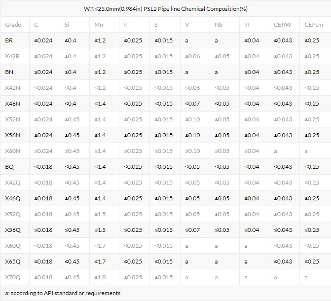 | PSL2 линия трубы механические свойства | ||||