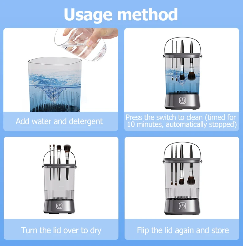 We focus on supply for Amazon, brand, distributor and shopping mall, best quality! 12 years OEM&ODM experience factory, good after-sales service! The hottest products manufacturing experience, factory price! Support customize logo, package for brand,fast delivery, DDP shipment! Welcome to visit our factory at any time! Product name:Wireless portable rechargeable automatic cosmetic makeup brush cleaner dryer machine with silicone cap home use Motor speed: 10000RPM Battery capacity: 1200mAh 2 cleansing mode 10 minutes timer function One click cleaning Portable Package List 1* Makeup brush cleaner 1* USB cable 1*English manual 1* Color Box |