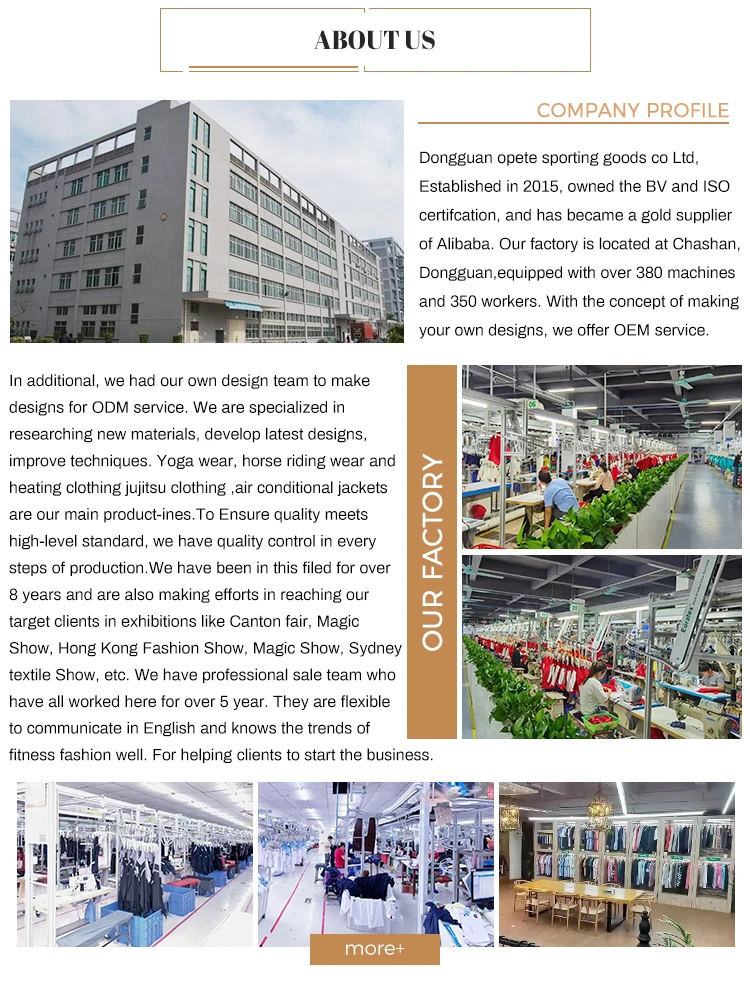 We are specialize in manufacturing Horse riding clothing and Fitness wear. 10 years experience made us become the biggest supplier of horse riding wear in China. Brands have worked with us, like Pikeur, Pf of Sweden, Mayadelorez, Gymking,etc.
