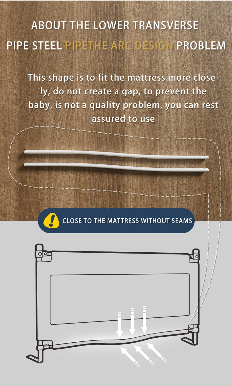 1.Built-in bed type, mattress and bed edge as long as you cansqueeze a finger (because the mattress is elastic, fingers can betucked in)can installbed guardrail !2.Flat bed type, the mattress is easy to shift, and the installationof the guardrail needs to befixed by screws 3.Non-embedded iron bed, mattress easy to shift, can not beplaced on the base, and can not be fixed on the screw bed type,not easy to use the bed guardrail,not recommended to buy