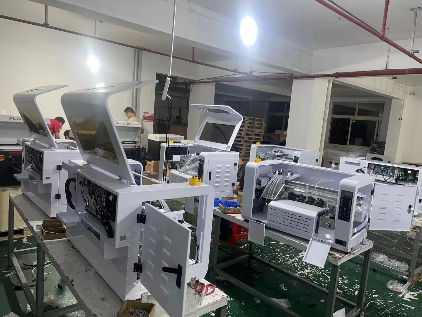A: Our printer does not come with ink, if you need to buy with the ink together, please contact us. We also provide the spare parts, and printing materials, such as PET film, dtf powder, etc. If you need, please contact us.