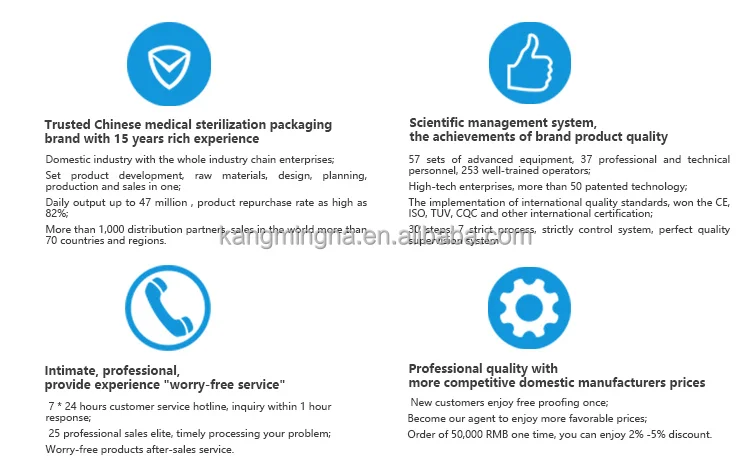 Self-sealing sterilization pouch,Sterilization roll,Tyvek roll,Gusseted roll,Medical Crepe paper,SMS/SMMS Non-woven sterilization wrap,Autoclave tape,ETO Indicator tape,Plasma indicator tape,Steam indicator strip,Bowie-Dick Test Pack,Dental bibs,Dental barrier film etc.