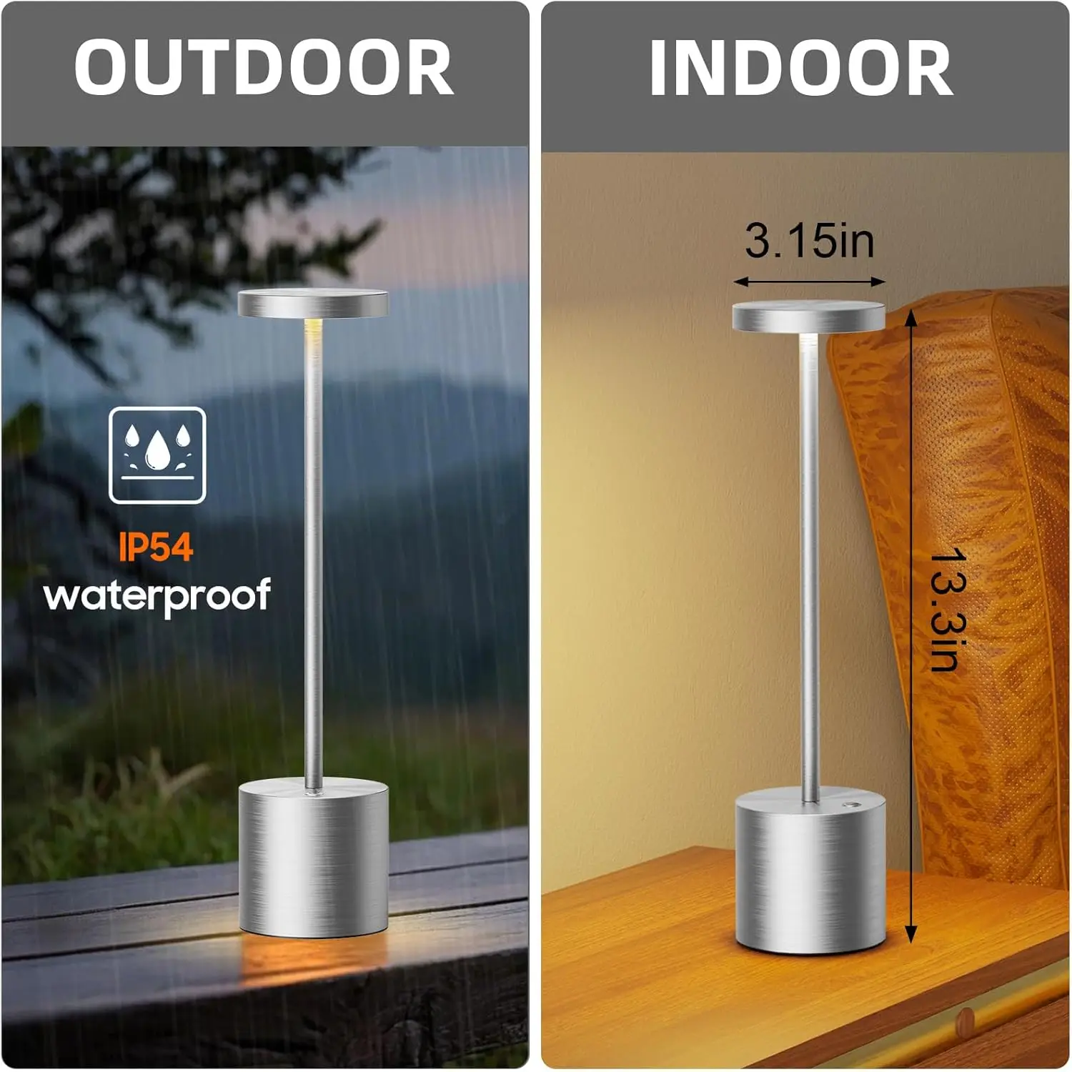 Our Cordless LED Table Lamps with 360° Touch Sensor, TAP anywhere on the table lamp top panel to adjust colors or switch on/off.