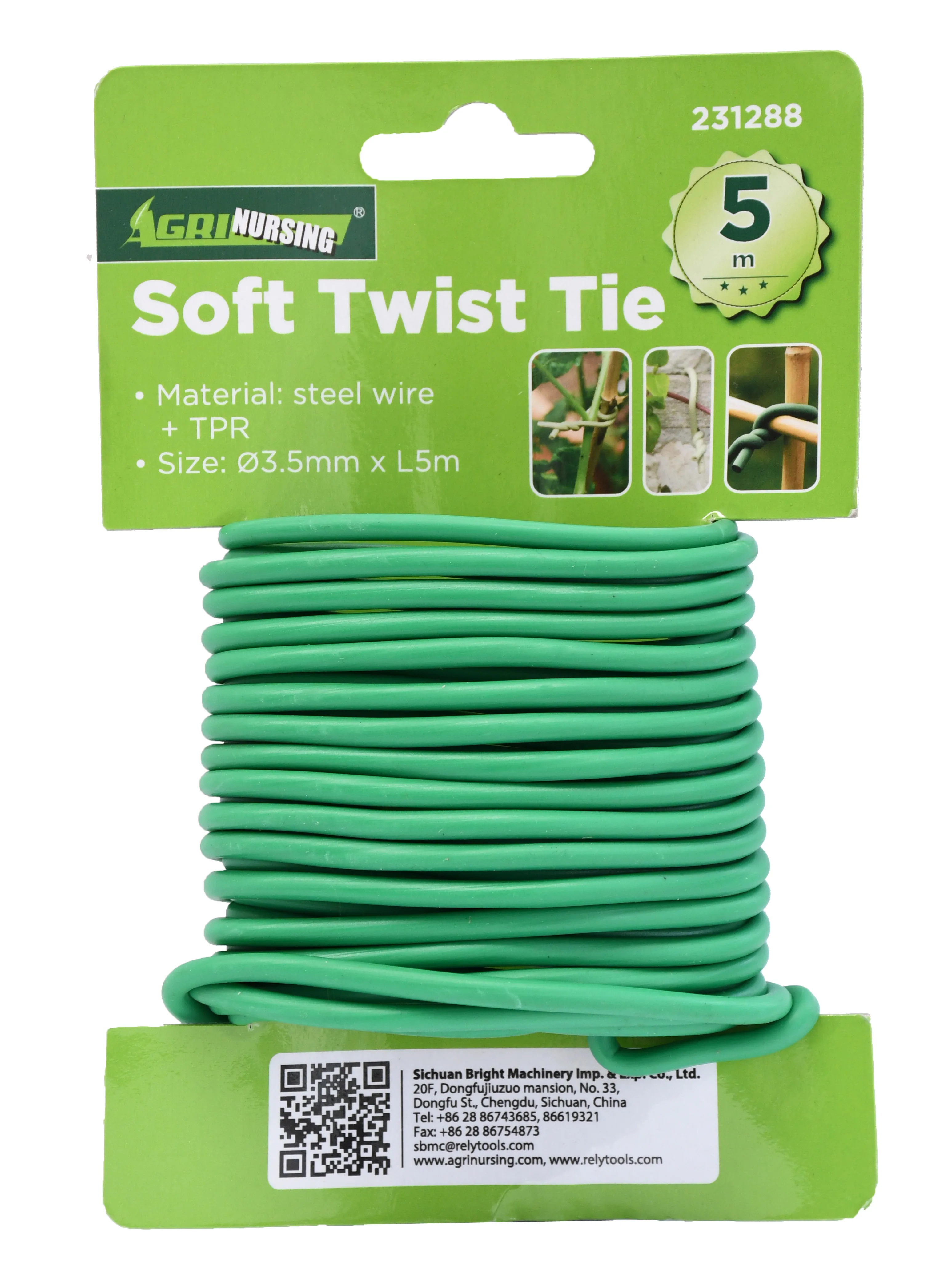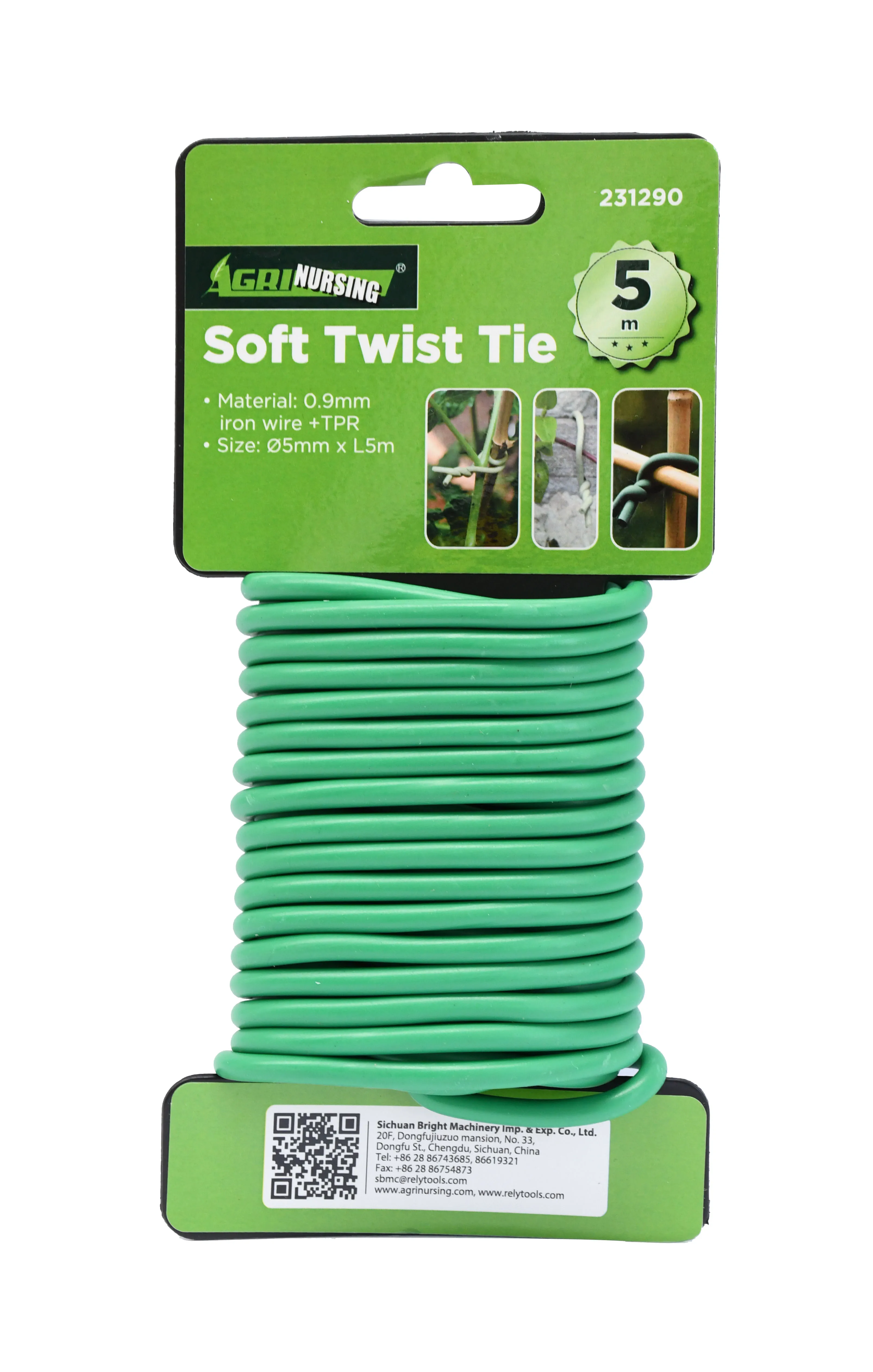 5m TPR coated twist ties green reusable soft rubber for garden and vegetable binding use twist tie